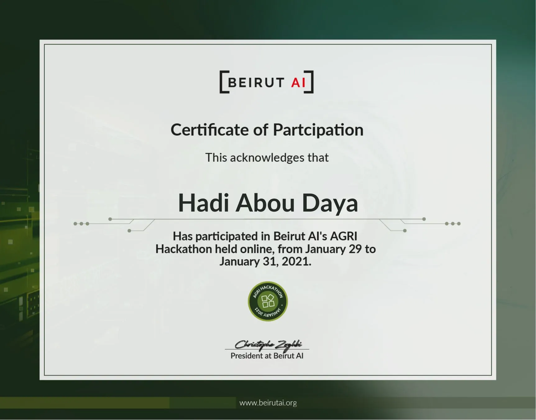 Attended a 5-day Beirut AI bootcamp covering deep learning, NLP, CV, and time series. Reached finals of the Agri-hackathon with a crop recommendation system.